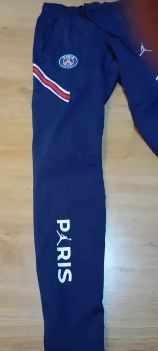 Pantalón deportivo del Paris Saint-Germain. - Diseño con el escudo del PSG y el logo de Jordan. - Detalles de rayas rojas y blancas en los laterales. - Cintura elástica con cordón ajustable.