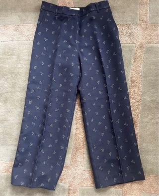 Pantalón culotte de mujer, talla 38, azul marino con cerezas de la marca Bonpoint, con forro interior. Dispongo del mismo pantalón de niña, en mi perfil.