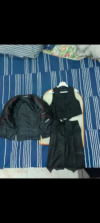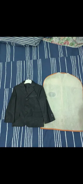 Elegante traje para niño, ideal para ocasiones especiales. - Incluye chaqueta y pantalón. - El traje está en buen estado. - Perfecto para eventos formales.