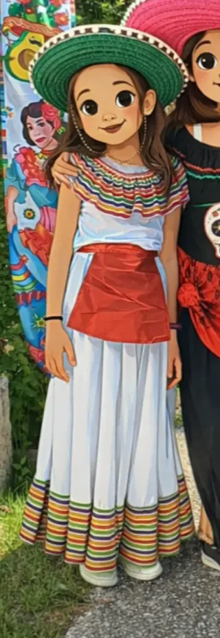 Conjunto de disfraz inspirado en la cultura mexicana, ideal para fiestas temáticas o celebraciones. El disfraz mejicana niña se compone de 3 piezas: una camiseta sin mangas, un delantal y una falda larga. El disfraz mejicano niño se compone de 2 piezas: un poncho y un pantalón largo. El disfraz de mejicano adulto es talla única. Elaborado con los mejores materiales (100% poliéster) y testado para una total seguridad. Incluye una funda y un percha para guardarlo fácilmente y proteger los tejidos.