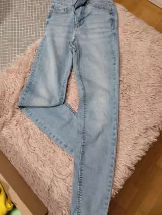 Pantalón vaquero para niño de la marca Pull&Bear. - Corte ajustado. - Lavado claro. - Cierre de cremallera y botón. - Talla 40. - Super Skinny.