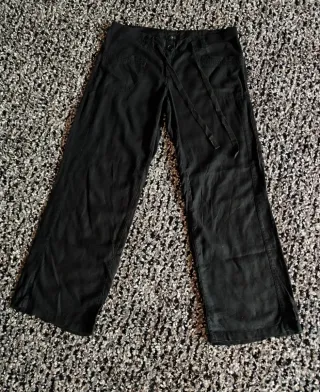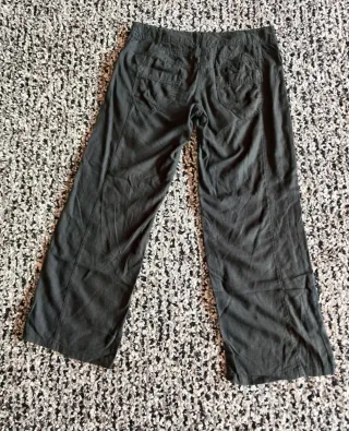 Pantalón premamá de corte ancho. - Cintura ajustable con goma interior. - Bolsillos delanteros. - Tejido ligero tipo lino, muy cómodo. - Da mucha talla.