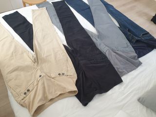 🤰Pantalones premamá con dos tallas diferentes. Los vaqueros son talla S (36) y los pantalones beige talla M (38) Son cómodos y adaptables, son perfectos para dos tamaños diferentes de tripa. ✨ Pantalones vaqueros en tono azul. Tienen signos evidentes de desgaste ✨ Pantalones tipo chino en tono beige con bolsillos de buena capacidad. El vaquero lo ha dado todo, tiene signos de desgaste (ver foto). Los pantalones beige están en buen estado. 🛍️ Si te interesa algo más de mi perfil, puedo hacer lotes. Tengo otros artículos premamá