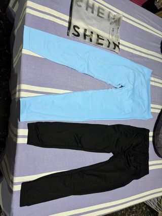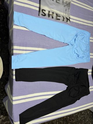Conjunto de dos leggings de maternidad de la marca SHEIN. - Un par de leggings de color azul. Talla L - Un par de leggings de color negro.Talla M 6€ cada una o 10 las 2.