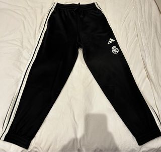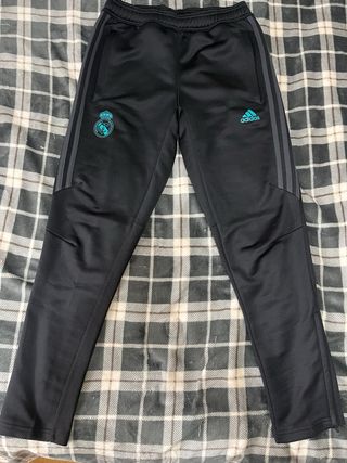 Pantalón deportivo del Real Madrid, marca Adidas. Nuevo sin estrenar, con las etiquetas. Comprado en la tienda oficial. - Tejido negro. - Cintura elástica con cordón. - Logo del Real Madrid y Adidas.