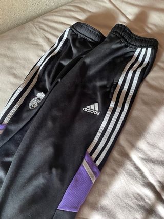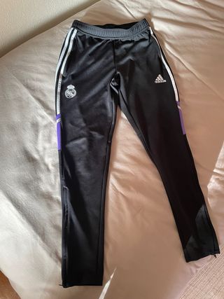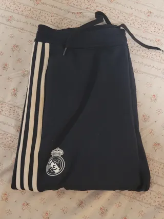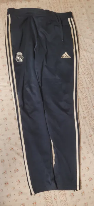 Pantalones de entrenamiento del Real Madrid. - Diseño con las tres franjas características de Adidas. - Escudo del Real Madrid en la pierna izquierda. - Logo de Adidas en la pierna derecha. -No de han usado pero no tienen etiqueta porque solo viene con la camiseta. -Se hace descuento si se compra con ltra camiseta