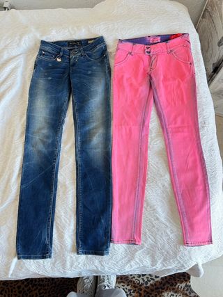 Conjunto de dos pantalones vaqueros. - Unos vaqueros de la marca Salsa en tono azul. - Unos vaqueros de la marca Met en tono rosa. Sin defectos, en perfecto estado.