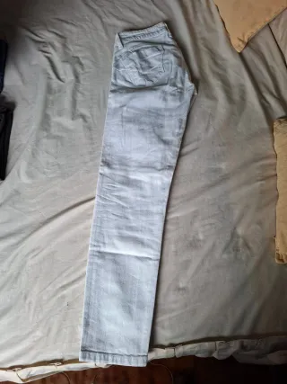 Pantalón vaquero de mujer de la marca Salsa, pantalón recto de algodón,muy suave y cómodo para días de calor,está arreglado de la cintura,con pieza añadida,si se descose se queda como modelo original. Sienta muy bien,Medidas cintura 42 cm, cadera 47 cm , pierna 20 cm, ancho abajo 20 cm, largo 1.07 cm,en Madrid o Valencia te lo enseño