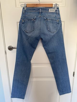 Pantalones vaqueros de mujer de la marca Salsa.(W26L32) - Diseño con tachuelas decorativas en los bolsillos delanteros. - Corte ajustado y son elásticos. - Lavado desgastado.