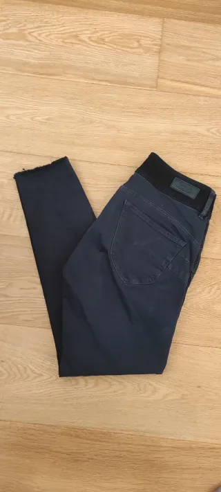 Pantalón pitillo de la marca Salsa Jeans en color azul marino. Diseño moderno y cómodo. Bordados en los laterales como se ve en las fotos. - Corte ajustado. - Cintura alta. - Bajo deshilachado. Pantalón de la marca Salsa jeans , talla W29 L30 , marca talla europea 37 , yo lo he marcado como 38 , color azul oscuro , bordados en la zona de bolsillos. Usado un par de veces , está nuevo