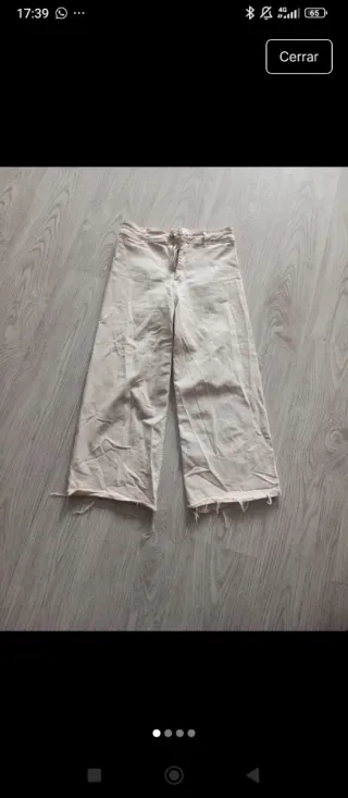 Pantalón estilo culotte de Stradivarius en color beige. Son muy cómodos y con un corte ancho. - Cintura alta. - Bajo deshilachado.