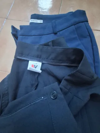 Conjunto de dos pantalones de vestir. - son muy comodos ,estan perfectamente ,aunque la foto no salen bien , muy ponibles y combinables - Talla 42(Xl / 16). - Un pantalón es azul y el otro es negro.