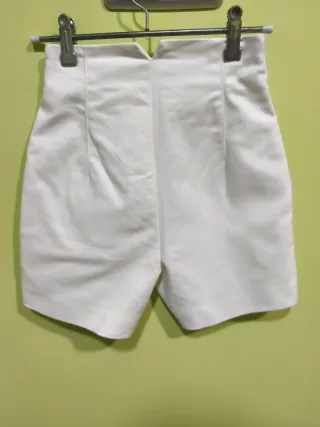 Preciosos shorts de la marca Stradivarius. Son de color blanco y tienen el tiro alto. Ideales para el verano. - Talla: 38 - Cierre con botón y cremallera
