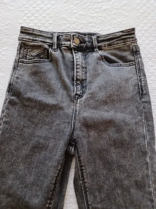 Pantalón vaquero de mujer de corte ajustado (Skinny y tiro Regular). En color gris claro y talla 34. En buen estado, con poco uso