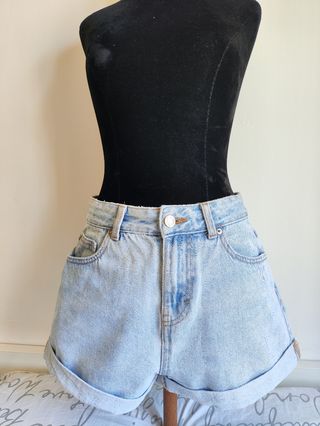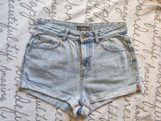 Preciosos shorts vaqueros de Stradivarius, talla M (38). Son de color azul claro y tienen un corte ligeramente acampanado. - Cintura alta. - Buen estado.