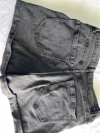 Pantalones cortos vaqueros de Stradivarius en color negro, talla M (EUR 38 - UK 10). Son de tiro alto y tienen un diseño desgastado. - Tienen cierre de cremallera. - Se encuentran en buen estado.