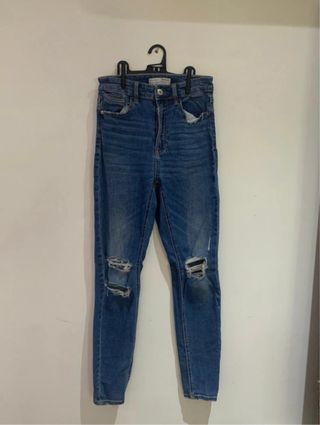 Pantalón vaquero roto Stradivarius. Es de tiro alto, muy cómodo y queda muy bien.