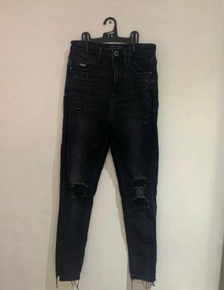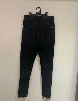 Pantalón vaquero roto negro Stradivarius. Tiro muy alto y pitillo. Muy cómodo y queda muy bien.
