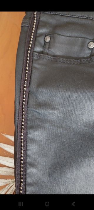 Se vende pantalón negro encerado de stradivarius con bonito adorno plateado en los costados.