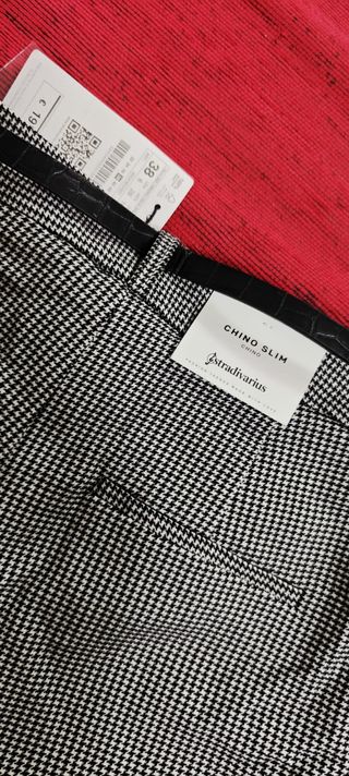 Pantalón de mujer con estampado de pata de gallo. Talla 40 de Stradivarius. Sin estrenar, aunque sin etiqueta. - Diseño clásico. - Corte recto. - Cintura con trabillas.