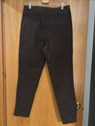 Pantalones de vestir de color marrón. - Cintura elástica. - Bolsillos laterales. - Dobladillo en los bajos.