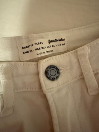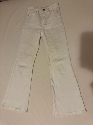 Pantalones blancos de campana de Stradivarius con flecos en los bajos. Talla 34. Nuevos.
