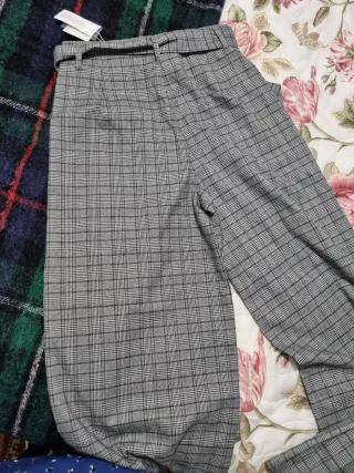 Pantalón de vestir Stradivarius cuadros gris XS.