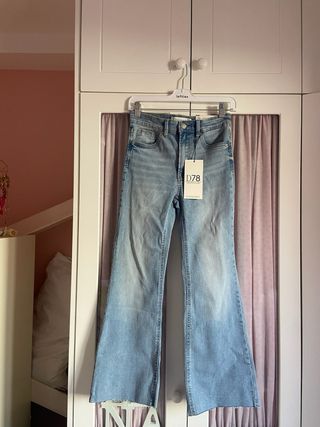 Pantalón vaquero de tiro alto con corte flare. - Tejido vaquero. - Cintura alta. - Pierna acampanada.