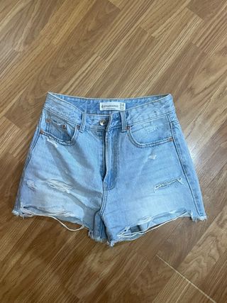 Pantalón azul corto, de tela fina, no vaquera. Marca Stradivarius, talla 34. Las fotos no le hacen justicia, está muy poco llevado y bien conservado. Es muy fresco para el verano y muy estiloso.