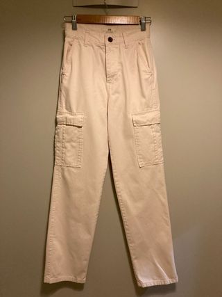Pantalon cargo con bolsillos color crema. Talla XS de Stradivarius. Como nuevo