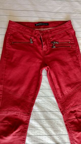 Bonito pantalón rojo de Stradivarius, está como nuevo. Usado pocas veces. Talla 36, una S. Queda perfecto.