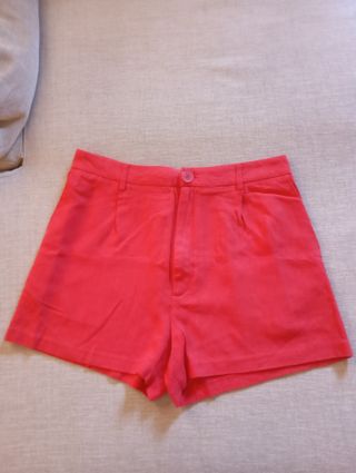 Preciosos shorts de la marca Stradivarius. Son de color rojo y tienen un corte clásico. - Tienen un cierre de botón. - Son de tela lisa. - Ideales para el verano. Bolsillos.