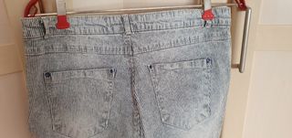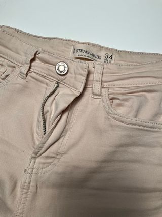 Pantalones vaqueros de color coral, efecto PUSH UP, cortes por detrás, para subir el culo. - Talla: talla 32. - Marca: Stradivarius. - Estilo: Ajustado, tipo pitillo. - Es algo elástico.