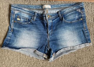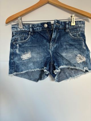 Pantalón corto de estilo vaquero, con un lavado claro. - Diseño con vuelta en el bajo. - Cintura alta.