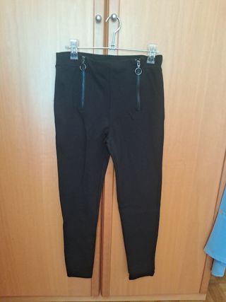 Pantalón pitillo con un acabado encerado que le da un toque moderno. - Diseño pitillo. - Acabado efecto piel. - Cremalleras decorativas en los bolsillos delanteros. - Detalle de canalé en las rodillas. - Cremallera en los bajos de las perneras.