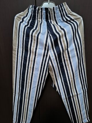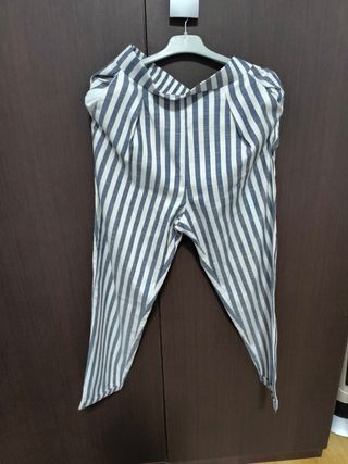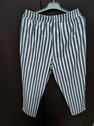 Pantalones de rayas blancas y azules .Ideales para un look cómodo y estiloso. - Están hechos de un tejido ligero y fresco. - Son de corte amplio y favorecedor. - Perfectos para el verano.