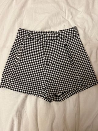 Pantalón corto con estampado de cuadros. - Diseño de cuadros blancos y negros. - Cintura alta con trabillas.