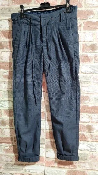 Pantalones de cuadros en tonos rojos y azules, talla 38. Son de corte recto y tienen un diseño elegante. Envío rápido - Diseño de cuadros - Talla 38 - Corte recto - cierre lateral de cremallera