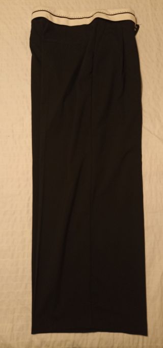 Pantalón vestir Stradivarius, talla 38, color negro cierre con presillas y botón, cremallera. Bolsillos laterales, los bolsillos traseros son adorno, no son bolsillos como tales. Largo y straight.