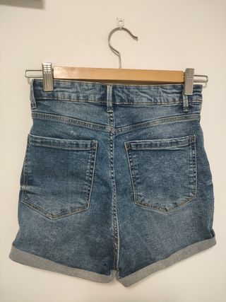 Pantalón corto vaquero con un estilo desgastado y desteñido.