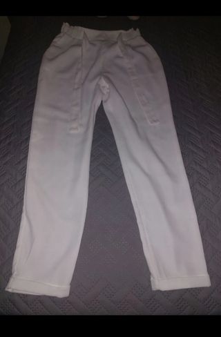 Pantalón blanco de Stradivarius. - Cintura elástica con cinturón. - Bajo del pantalón remangado.
