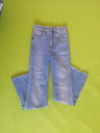 Pantalón vaquero elástico de Stradivarius. Talla 32 XXS - Corte acampanado. - Bajo deshilachado. - Tiro alto. -90 cm largo y 27 cm de cintura. O25