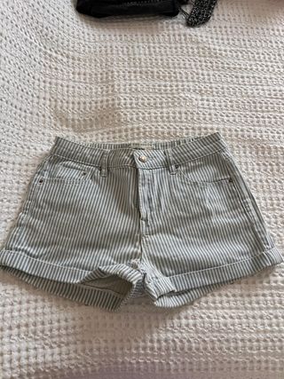 Shorts de Stradivarius con un diseño de rayas marineras. - Diseño de rayas verticales. - Cintura alta. - Dobladillo en los bajos.