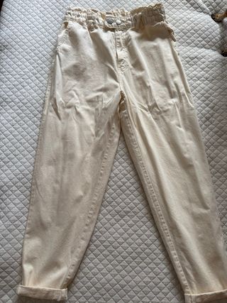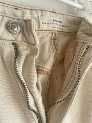 Pantalón vaquero de Stradivarius en color beige. - Corte tapered fit. - Costuras vistas en marrón - Talla 36 aunque no da mucha talla