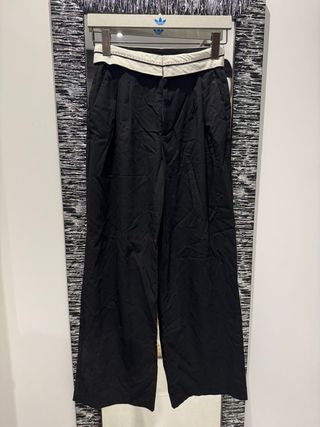 Pantalón negro de Stradivarius con un diseño moderno y elegante. - Cintura ancha con detalle de contraste. - Pierna ancha y fluida. - Bolsillos delanteros, los traseros están cosidos.