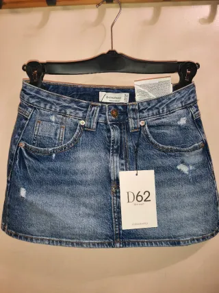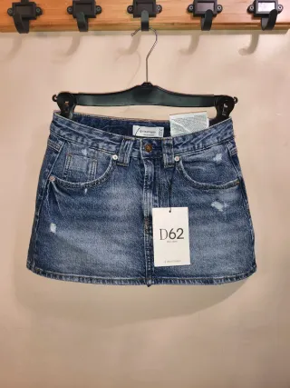 Falda pantalón vaquera de la marca D62. - Diseño desgastado. - Bolsillos delanteros y traseros. - Cierre de botón y cremallera.