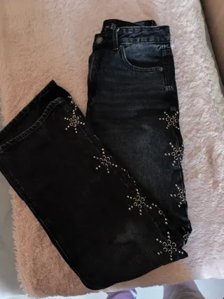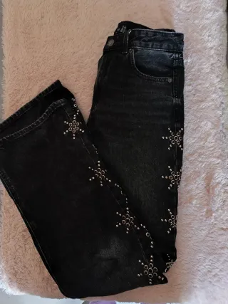 Stradivarius Jeans Talla 36 Negros con Detalles