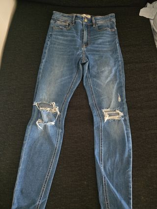Pantalón vaquero pitillo de corte ajustado. - Diseño desgastado con rotos. - Tiro alto. - Lavado azul claro. - poco usados - más info o fotos dm