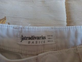 El azul con topitos es de Stradivarius y tiene cremallera en el lateral del tobillo. El caqui es de Primark. Los dos son talla 38 y son elásticos. Son muy cómodos y sientan muy bien. Los dos por 5€. Perfecto estado
