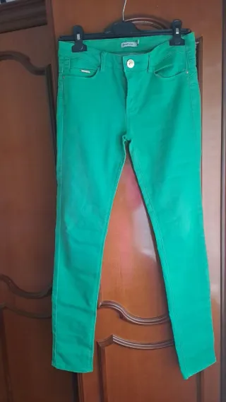 Pantalón Bershka talla 44,sin estrenar sin etiqueta Medida cintura 43cm 12e Pantalón vaquero stradivarius talla 44 Puesto una ocasion Medida cintura 42cm,tejido elástico 12e
